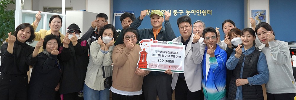 ±¤ÁÖ»çȸº¹Áö°øµ¿¸ð±Ýȸ´Â ¡°ÃÖ±Ù ±¤ÁÖµ¿±¸³ó¾ÆÀν°ÅͰ¡ Àå¾ÖÀÎÀÇ ³¯(4¿ù20ÀÏ)À» ¸Â¾Æ ¼º±Ý 30¿©¸¸¿øÀ» Àü´ÞÇß´Ù¡±°í 19ÀÏ ¹àÇû´Ù.