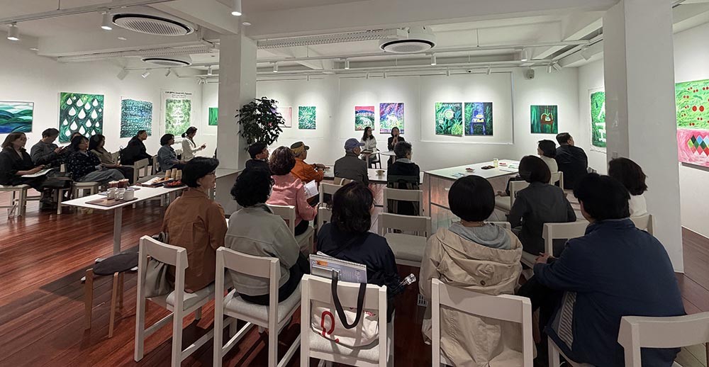 Ǫ¸¥ ½£ÀÇ Á¤¼¸¦ ÈÆø¿¡ ´ã¾Æ¿Â ÆÝ±×¸° ÀÛ°¡ÀÇ ÀÛ¾÷ ¼¼°è¸¦ ½Ã¹Îµé°ú ³ª´©´Â ÀÚ¸®°¡ ¸¶·ÃµÆ´Ù. <»çÁø>