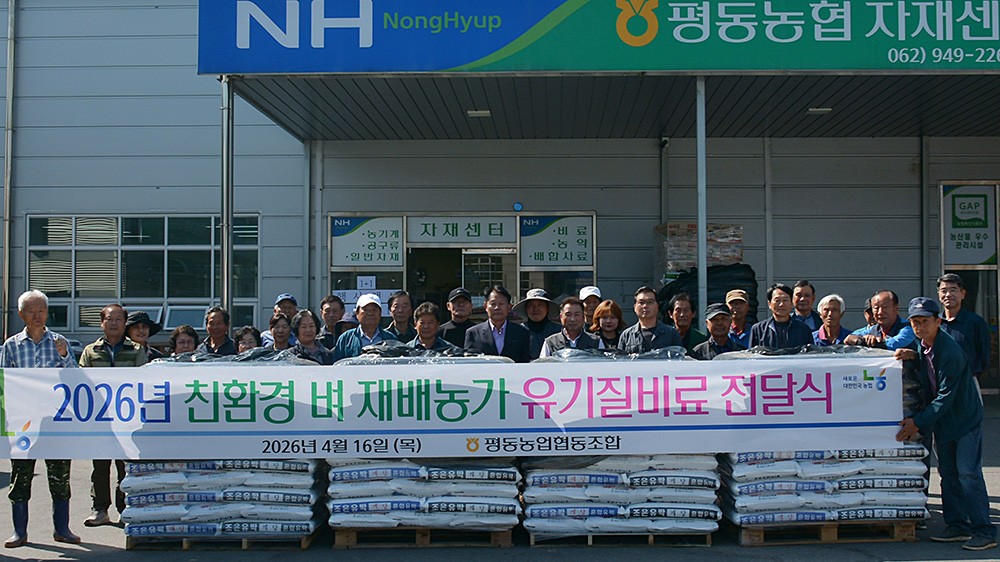 ±¤ÁÖ Æòµ¿³óÇùÀº 29ÀÏ ¡°ÃÖ±Ù Æòµ¿³óÇù º»Á¡ ÀÚÀç¼¾ÅÍ ¾Õ¿¡¼ ¡®2026³â ģȯ°æ º Àç¹è³ó°¡ À¯±âÁú ºñ·á Àü´Þ½Ä¡¯À» °³ÃÖÇß´Ù¡±°í ¹àÇû´Ù.