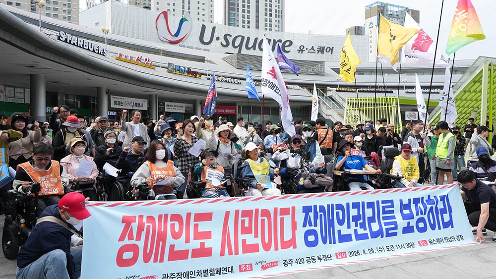 ¼±µÎ¿¡ ¼± ºñÀå¾ÖÀΠȰµ¿°¡µéÀº ¡®Àå¾ÖÀεµ ½Ã¹ÎÀÌ´Ù. Àå¾ÖÀÎ ±Ç¸®¸¦ º¸ÀåÇ϶󡯴 ³»¿ëÀÇ Çö¼ö¸·À» µç ä °æÂûÀÇ ÅëÁ¦ÇÏ¿¡ ¹ß°ÉÀ½À» ¿Å°å´Ù.