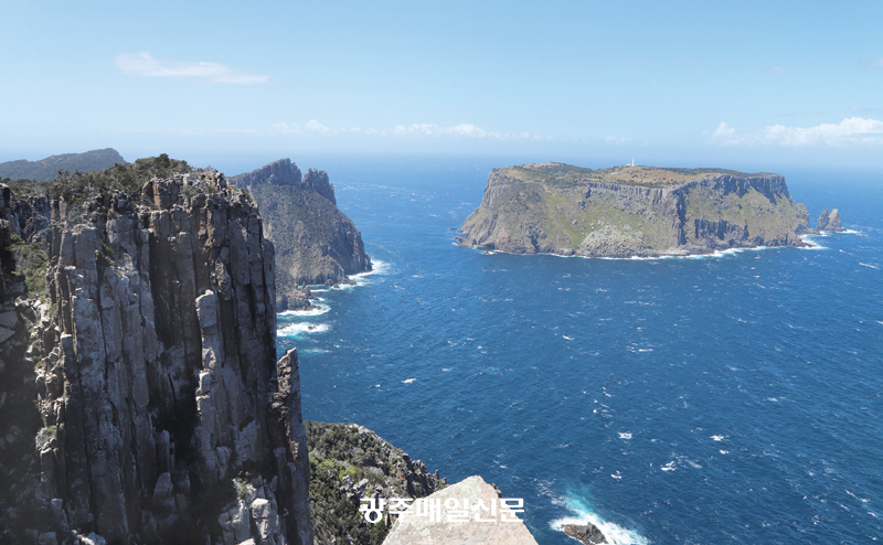 ±ºÃ»»ö ¹Ù´Ù´Â ³¡¾øÀÌ À̾îÁö°í, ¹Ù´Ù¿¡¼ ¼öÁ÷À¸·Î ¼ÚÀº ÁÖ»óÀý¸®´Â ÀÌ ¼¼»ó ÃÖ°íÀÇ µ¹ Á¶°¢Ç°ÀÌ´Ù. Áã¶ó±â½Ã´ë È»êȰµ¿À¸·Î ºÐȱ¸¿¡¼ Èê·¯³ª¿Â ¸¶±×¸¶°¡ Â÷°¡¿î ¹Ù´å¹°°ú ¸¸³ª ±Þ°ÝÇÏ°Ô ½ÄÀ¸¸é¼ Æ´»õ°¡ »ý°Ü 4°¢ÇüÀ̳ª 6°¢Çü Á¶¸³Çö¹«¾Ï ±âµÕÀÇ ÁÖ»óÀý¸®°¡ µÆ´Ù. ÀÌÈÄ ¼ö¹é¸¸ ³âÀÌ È帣´Â µ¿¾È ÁÖ»óÀý¸®´Â ÆÄµµ, ¿°ºÐ, ¾óÀ½°ú ¹Ù¶÷¿¡ ¾µ¸®°í dzȵŠÁö±ÝÀÇ ¸ð½ÀÀÌ µÇ¾ú´Ù. °ÅÄ¥°í ¹«¶Ò¶ÒÇßÀ» ¹ÙÀ§Ç¥¸éµµ ±ðÀÌ°í ±ð¿© ºÎµå·´°í ¿ø¸¸ÇØÁ³´Ù. ŸÁ¹Ýµµ ³²ÂÊ¿¡ ÀÚ¸®ÇÑ ¼¼ °³ÀÇ °ù, ÄÉÀÌÇÁ ¶ó¿ï(Cape Raoul)¡¤ÄÉÀÌÇÁ Çʶó(Cape Pillar)¡¤ÄÉÀÌÇÁ ÇÏ¿ìÀÌ(Cape Hauy)ÀÇ ¸ð½ÀÀÌ ¹Ù·Î ±×·¯ÇÏ´Ù.