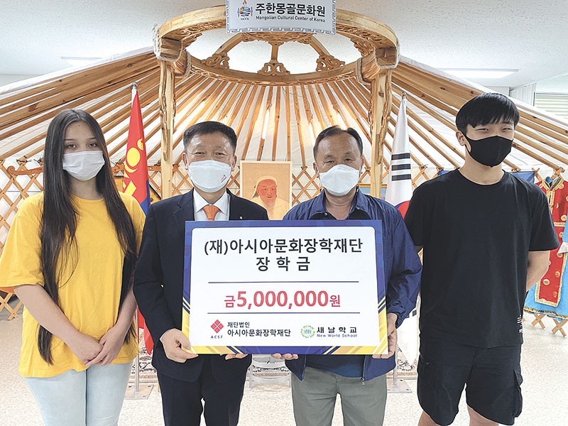 (Àç)¾Æ½Ã¾Æ¹®ÈÀåÇÐÀç´Ü(ÀÌ»çÀå ±è¸í±º)°ú ±¤»ê±¸ »õ³¯Çб³(±³Àå ÀÌõ¿µ)´Â Áö³ 8ÀÏ »õ³¯Çб³ ÇлýµéÀÇ Çо÷Áö¿øÀ» À§ÇØ 500¸¸¿ø ÀåÇÐ±Ý Àü´Þ½ÄÀ» °¡Á³´Ù.