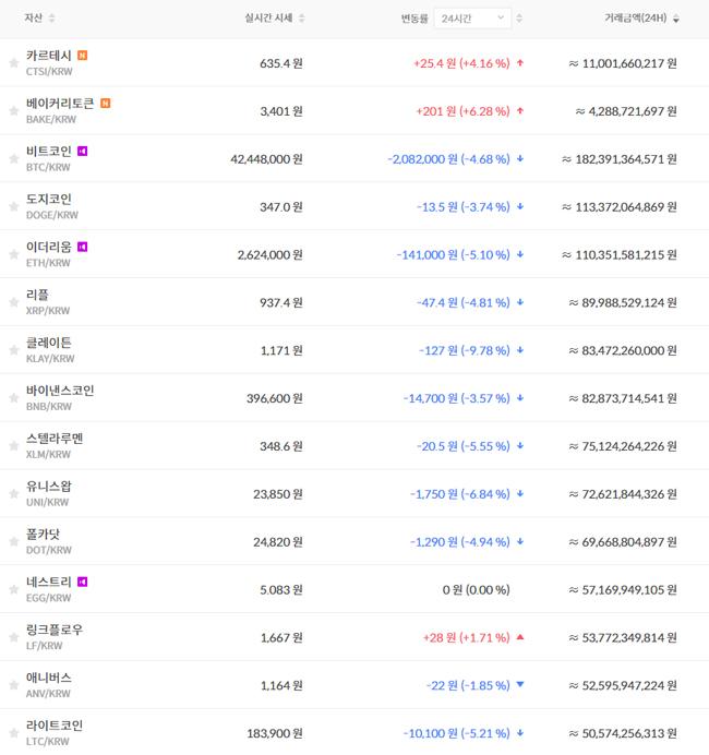 ¹ÙÀ̳½½ºÄÚÀÎÀº 39¸¸6õ600¿øÀ¸·Î 24½Ã°£ Àüº¸´Ù 3,57% Ç϶ôÇß°í, ¿¡ÀÌ´Ù´Â 1õ670¿øÀ¸·Î ÇÏ·ç Àüº¸´Ù 3.69% Ç϶ôÇß´Ù.