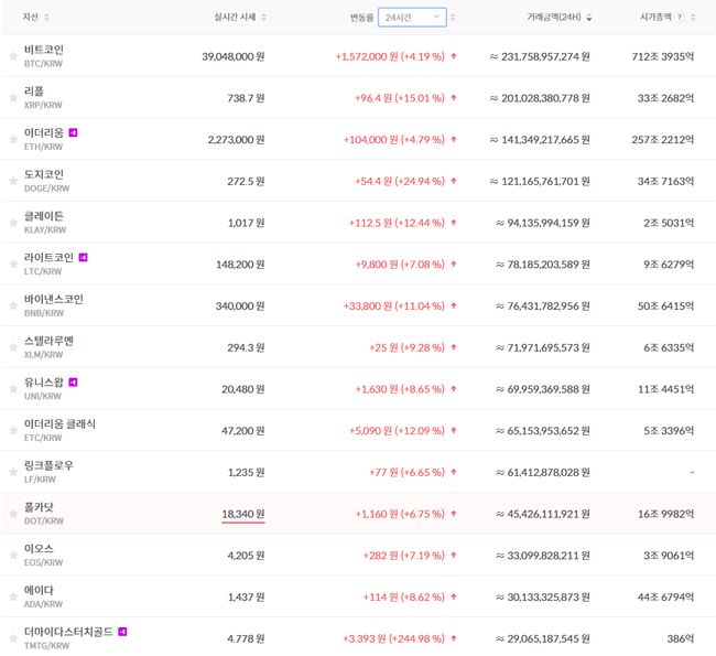 ¹ÙÀ̳½½ºÄÚÀÎÀº 34¸¸¿øÀ¸·Î 24½Ã°£ Àüº¸´Ù 11.04% »ó½ÂÇß°í, ¿¡ÀÌ´Ù´Â 1õ437¿øÀ¸·Î ÇÏ·ç Àüº¸´Ù 8.62% ¿Ã¶ú´Ù.