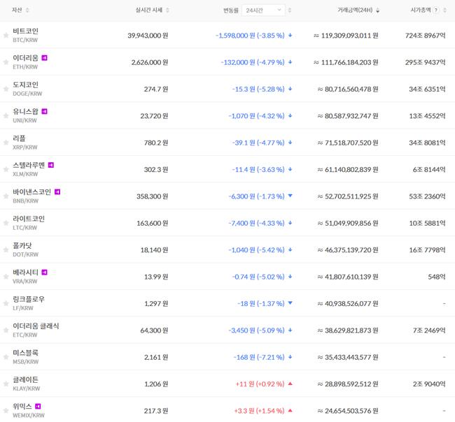 ¿ì¸¶ ÄÚÀÎÀº 1¸¸1õ140¿øÀ¸·Î 24½Ã°£ Àüº¸´Ù 4.54% ³»·È°í, ºñÆ®ÄÚÀο¡½ººêÀÌ´Â 16¸¸9õ300¿øÀ¸·Î ÇÏ·ç Àüº¸´Ù 4.19% Ç϶ôÇß´Ù.