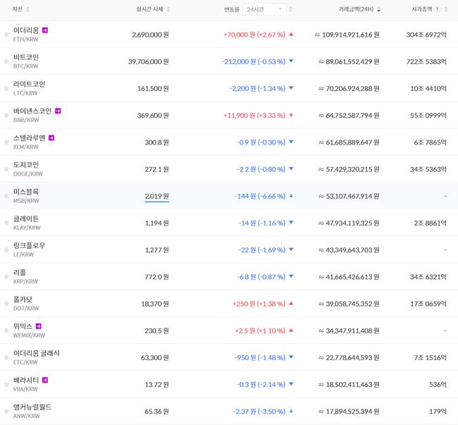 ¹«ºñºí·Ï ÄÚÀÎÀº 9.823¿øÀ¸·Î 24½Ã°£ Àüº¸´Ù 1.17% ³»·È°í, ¸ÞÅ»Àº 2õ70¿øÀ¸·Î ÇÏ·ç Àüº¸´Ù 1.94% Ç϶ôÇß´Ù.
