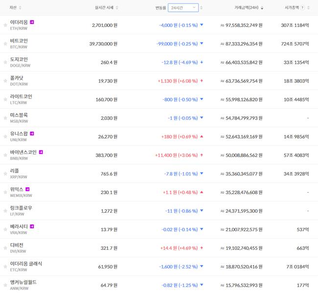 ÀÌ´õ¸®¿ò ½Ã¼¼´Â ÀÌ ½Ã°¢ ºø½æ¿¡¼ 24½Ã°£ Àüº¸´Ù 0.15% ³»¸° ¿À¸¥ 270¸¸1õ¿øÀÌ´Ù. ¾÷ºñÆ®¿¡¼´Â °³´ç 270¸¸6õ¿øÀÌ´Ù.