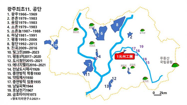 2020³â ¸» ÇöÀç ±¤ÁÖÁö¿ª »ê¾÷´ÜÁö´Â 10°³, 880¸¸ÆòÀÌ Á¶¼ºµÅ ÀÖ´Ù. ÀÌ °÷¿¡ ¾à 4õ°³ÀÇ °øÀåÀÌ ÀÖÀ¸¸ç 6¸¸4õ¿©¸íÀÌ ÀÏÇϰí ÀÖ´Ù. ÷´Ü ±¹°¡»ê´ÜÀº 300¸¸Æò¿¡ 1õ500°³¼Ò, Á¾¾÷¿ø 1¸¸8õ¿©¸í, Çϳ² ½Ã»ê´ÜÀº 140¸¸Æò, 1õ°³¼Ò¿¡ 2¸¸3õ¸íÀÌ ´Ù´Ñ´Ù. ¿ÃÇØ ¸» ´ëÃÌÁö¿ª¿¡ ±¹°¡»ê´Ü µµ½Ã÷´Ü°ú ½Ã»ê´Ü ¿¡³ÊÁö¹ë¸® 43¸¸ÆòÀÌ ´õÇØÁø´Ù.