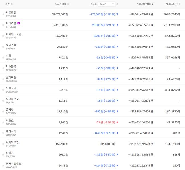 °¡»óÈÆó °Å·¡¼Ò ºø½æ¿¡ µû¸£¸é À̳¯ ¿ÀÀü 5½Ã 45ºÐ ÇöÀç 1ºñÆ®ÄÚÀÎÀº 3õ907¸¸6õ¿øÀÌ´Ù. 24½Ã°£ Àü°ú ºñ±³ÇØ 1.94% Ç϶ôÇß´Ù.