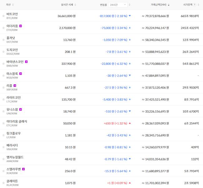 ½ÃÃÑ 4À§ÀÎ ¹ÙÀ̳½½º ÄÚÀÎÀº 6.93% Ç϶ôÇØ 283.42´Þ·¯¸¦ º¸À̰í ÀÖ°í, ½ÃÃÑ 5À§ÀÎ Ä«¸£´Ù³ë´Â 4.59% Ç϶ôÇØ 1.13´Þ·¯¿¡ ¸Å¸ÅµÇ°í ÀÖ´Ù.