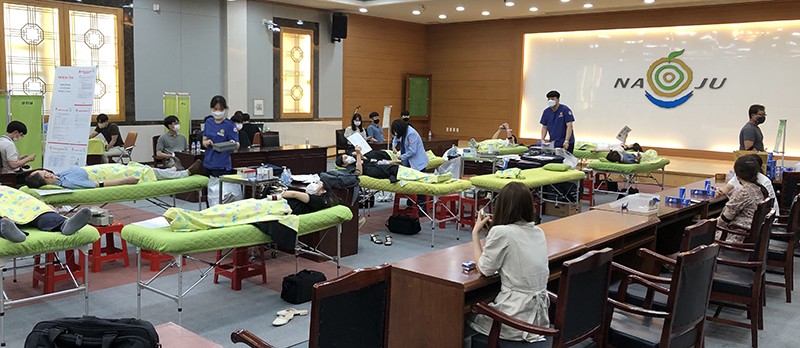 ³ªÁÖÇõ½Åµµ½Ã ³» °ø°ø±â°ü ÀÓÁ÷¿øµéÀÌ ¡®»ç¶ûÀÇ ÇåÇ÷¡¯ Ä·ÆäÀÎÀ» ÅëÇØ ¸¶·ÃÇÑ ÇåÇ÷Áõ¼ 376¸Å¸¦ ȼøÀü³²´ëº´¿ø¿¡ ±âŹÇß´Ù.