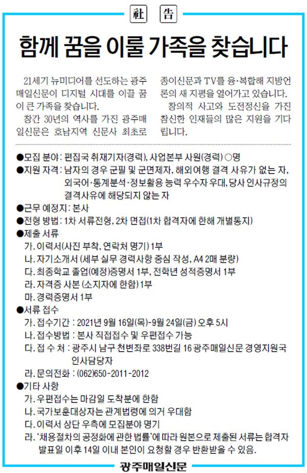 ´Ù. Á¢ ¼ö ó : ±¤Áֽà ³²±¸ õº¯Á·Π338¹ø±æ 16 ±¤ÁÖ¸ÅÀϽŹ® °æ¿µÁö¿ø±¹ Àλç´ã´çÀÚ