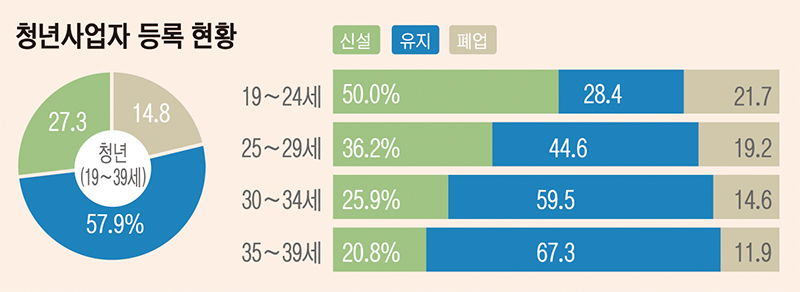 È£³²Áö¹æÅë°èû °ü°èÀÚ´Â ¡°¿¬·É´ë°¡ ¾î¸±¼ö·Ï »ç¾÷À» À¯ÁöÇÏ´Â ºñÀ²ÀÌ ³·Àº ¹Ý¸é ½Å¼³°ú Æó¾÷Àº ³ôÀº °ÍÀ¸·Î Áý°èµÆ´Ù¡±¸ç ¡°ÀÌ´Â °í¿ë ¾ÇÈ¿Í ÀÌ¿¡ µû¸¥ Ãë¾÷³¿¡ â¾÷À¸·Î ´«À» µ¹·ÈÁö¸¸ À¯ÁöÇϱⰡ ½±Áö ¾ÊÀº »óȲÀÓÀ» ¹æÁõÇÏ´Â °Í¡±À̶ó°í ¸»Çß´Ù.