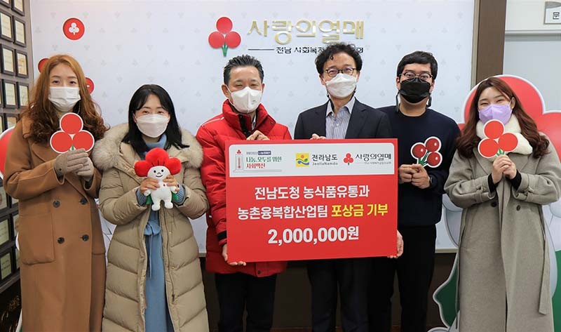 Àü³²µµ ³ó½ÄǰÀ¯Åë°ú ³óÃÌÀ¶º¹ÇÕ»ê¾÷ÆÀ Á÷¿øµéÀÌ µµÁ¤ ¹ßÀü ¿ì¼ö Á¦¾ÈÀ¸·Î äÅõйÞÀº »ó±Ý 200¸¸¿øÀ» »çȸº¹Áö°øµ¿¸ð±Ýȸ¿¡ ±âºÎÇß´Ù.