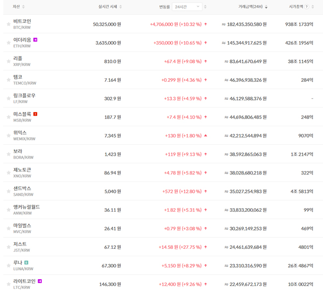 °¡»óÈÆó °Å·¡¼Ò ºø½æ¿¡ µû¸£¸é À̳¯ ¿ÀÀü 11½Ã 10ºÐ ÇöÀç 1ºñÆ®ÄÚÀÎÀº 24½Ã°£ Àü ´ëºñ 10.32% ¿À¸¥ 5õ32¸¸5õ¿øÀÌ´Ù.