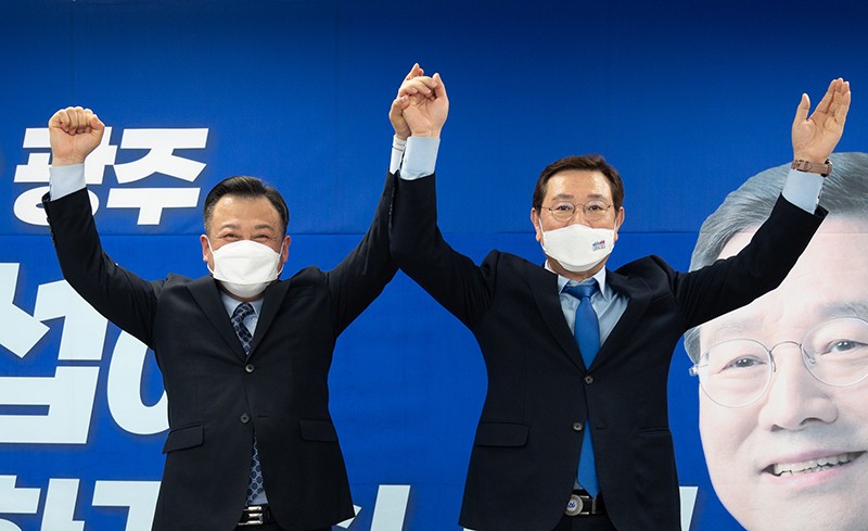6¡¤1 Áö¹æ¼±°Å ±¤ÁÖ½ÃÀå ¼±°Å¿¡¼ ¾ç°À¸·Î ²ÅÈ÷´Â À̿뼷¡¤°±âÁ¤ ¿¹ºñÈ帰¡ Á¤Ã¥ °ø¾àÀ» ÀÕ´Þ¾Æ ³»³õÀ¸¸ç ¹Ì·¡ ºñÀü Á¦½Ã¿¡ °øÀ» µéÀ̰í ÀÖ´Ù.