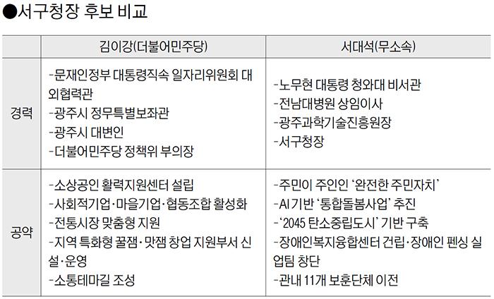 6¡¤1Áö¹æ¼±°Å ±¤ÁÖÁö¿ª ÃÖ´ë °ÝÀüÁö·Î ¶°¿À¸¥ ¼±¸Ã»Àå ¼±°Å´Â ´õºÒ¾î¹ÎÁÖ´ç °øÃµÀ» °Å¸ÓÁå ±èÀ̰ Àü ±¤Áֽà ´ëº¯Àΰú ¹«¼Ò¼ÓÀ¸·Î Àç¼±¿¡ µµÀüÇÏ´Â ¼´ë¼® Çö ûÀåÀÇ ¸Â´ë°á ±¸µµ·Î Ä¡¿ÇÑ ÇÑÆÇ ½ÂºÎ¸¦ ¿¹°íÇϰí ÀÖ´Ù.