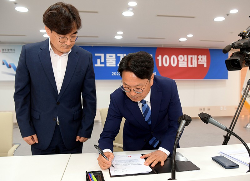°±âÁ¤ ½ÃÀåÀº ¡°¹°°¡, À¯°¡, ±Ý¸®ÀÇ »ïÁß°í¿¡ Ã³ÇØÀÖ´Â ½Ã¹Îµé¿¡°Ô Á¤ºÎ Á¤Ã¥¿¡¸¸ ÀÇÁ¸ÇÏÁö ¾Ê´Â ±¤ÁÖ¸¸ÀÇ ¸ÂÃãÇü ¹°°¡´ëÃ¥ÀÌ ÇÊ¿äÇÏ´Ù¡±¸ç ¡°¹Î»ý 100ÀÏ ´ëÃ¥Àº ¹°°¡ ¾ÈÁ¤, °æ¿µ ¾ÈÁ¤, °æÁ¦ À¯Áö°¡ Çٽɡ±À̶ó°í °Á¶Çß´Ù.
