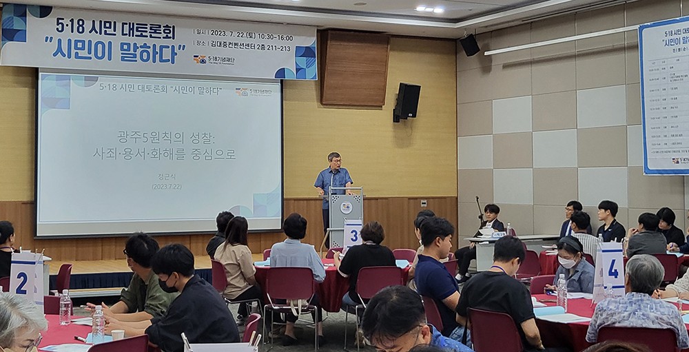 5¡¤18±â³äÀç´ÜÀº Áö³ 22ÀÏ ¿ÀÀü 10½Ã30ºÐ ±¤ÁÖ ¼±¸ ±è´ëÁßÄÁº¥¼Ç¼¾ÅÍ¿¡¼ ¡®5¡¤18 ¿ë¼¿Í ÈÇØ, Áø½Ç°ú Ã¥ÀÓ¡¯À̶ó´Â ÁÖÁ¦·Î ½Ã¹Î ´ëÅä·Ðȸ¸¦ °³ÃÖÇß´Ù.