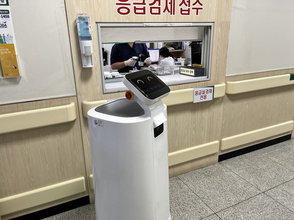 ¹è¼Û·Îº¿Àº 3°ü ·Îºñ Ãþ°ú ÁöÇÏ 1Ãþ °£À» ¿À°¡´Â °÷¿¡¼ ÀÀ±Þ °Ëü ¿î¼ÛÀ» ´ã´çÇߴµ¥, Á¤ÇØÁø ½Ã°£ ³» Á¤ÇØÁø ±¸°£À» ¹Ýº¹ ¼øÈ¯ÇÏ¸é¼ ºü¸£°í Á¤È®ÇÏ°Ô ÀÀ±Þ °Ëü¸¦ ¿î¼ÛÇß´Ù. ƯÈ÷ À̵¿ °æ·Î °£ ÀÚµ¿¹®»Ó¸¸ ¾Æ´Ï¶ó, ±âÁ¸¿¡ ¼³Ä¡µÅ ÀÖ´ø º´¿ø ·Îºñ ¿¤¸®º£ÀÌÅÍ¿Í ½Ç½Ã°£ µ¿±âȸ¦ ÅëÇØ ¹«ÀÎ ÀÚÀ² ÁÖÇàÀ» ÅëÇÑ Ãþ°£ À̵¿À» Çö½ÇÈ Çß´Ù.