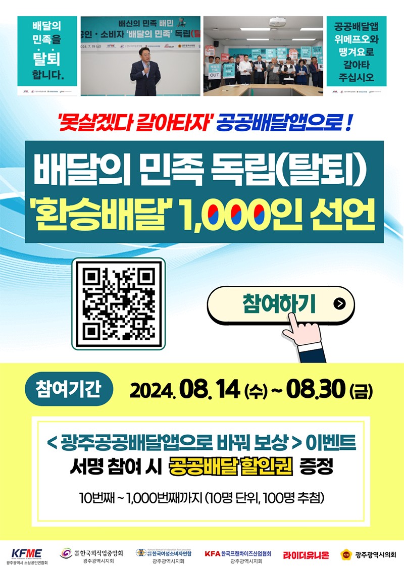 ±¤ÁÖ°æÁ¦ÀÏÀÚ¸®Àç´ÜÀº ¹è´ÞÀÇ ¹ÎÁ· µ¶¸³(Å»Åð) 1õÀÎ ¼¸í¿¡ Âü¿©ÇÏ´Â ¼Ò»ó°øÀΰú ½Ã¹Î Áß ÃÑ 100¸í¿¡°Ô °ø°ø¹è´Þ¾Û À§¸ÞÇÁ¿À, ¶¯°Ü¿ä ÇÒÀÎ »óǰ±ÇÀ» Áö±ÞÇÒ ¿¹Á¤ÀÌ´Ù.