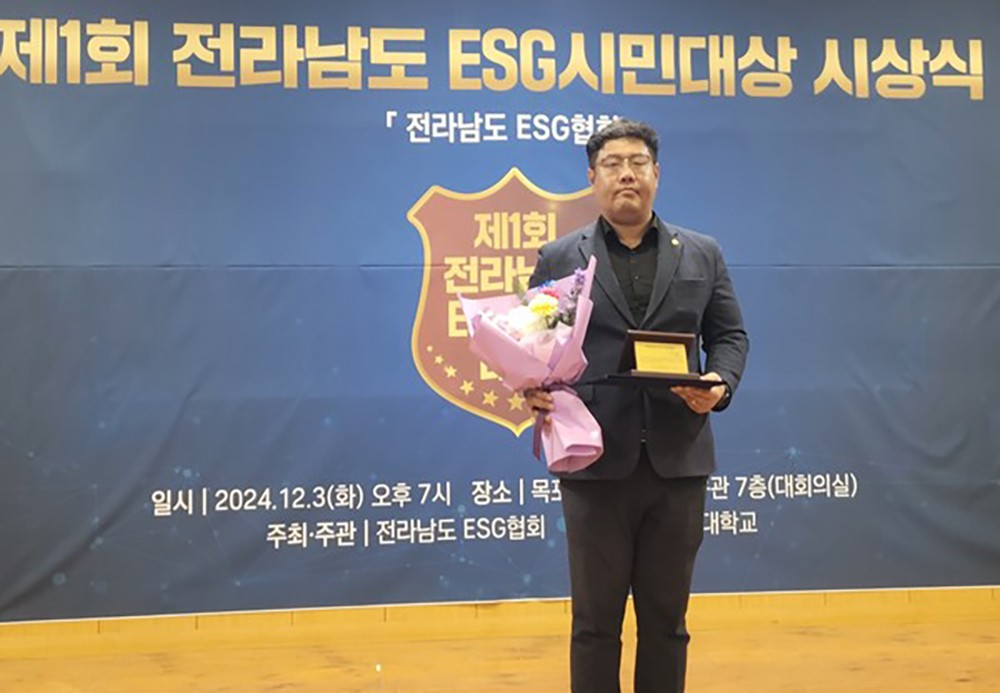 À̹ø ½Ã»ó½ÄÀº Àü³²µµ ESGÇùȸ ÁÖ°ü, ¸ñÆ÷°úÇдëÇб³ ÈÄ¿øÀ¸·Î ¿·ÈÀ¸¸ç, ESG °¡Ä¡¸¦ ½ÇÃµÇØ Áö¼Ó°¡´ÉÇÑ »çȸ Á¶¼º¿¡ ±â¿©ÇÑ °³ÀÎ ¹× ´Üü¸¦ ´ë»óÀ¸·Î ÁøÇàµÆ´Ù. Áö¿ª °ø°ø±â°ü, ±â¾÷, ½Ã¹Î´Üü, ÇÐ°è °ü°èÀÚµéÀÌ ÇÔ²² Âü¿©ÇØ ESG¿¡ ´ëÇÑ °ü½É°ú ½Çõ ÀÇÁö¸¦ °øÀ¯Çß´Ù.