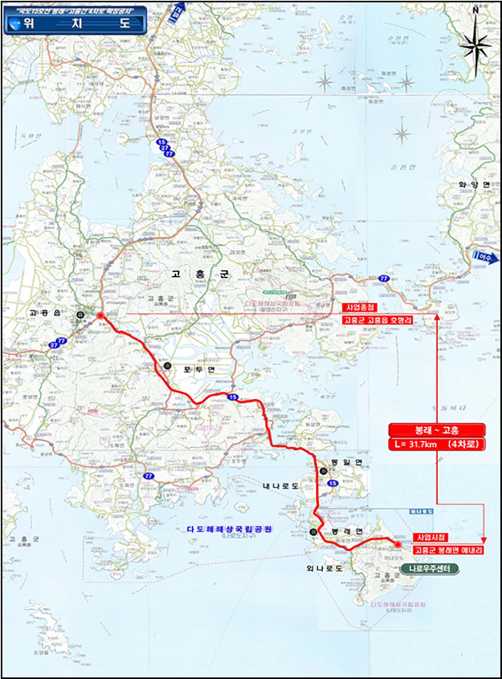 °íÈïÀ¾¿¡¼ ³ª·Î¿ìÁÖ¼¾Å͸¦ ¿¬°áÇÏ´Â ±¹µµ 15È£¼±Àº ÃÑ 31.7§° ±¸°£À» ±âÁ¸ 2Â÷·Î¿¡¼ 4Â÷·Î·Î È®ÀåÇÏ°Ô µÆ´Ù. °íÈﱺÀÇ ÇÙ½É ¹Ì·¡Àü·«»ê¾÷ÀÎ ¿ìÁֹ߻çü »ê¾÷Ŭ·¯½ºÅ͸¦ ¿¬°áÇÏ´Â Áß¿ä µµ·Î ±â¹ÝÀ» ¸¶·ÃÇÏ´Â ¼º°ú·Î °íÈﱺ°ú ´ëÇѹα¹ ¿ìÁÖ»ê¾÷ ¹ßÀüÀ» ¾Õ´ç±æ ÀüȯÁ¡ÀÌ µÉ °ÍÀ¸·Î ±â´ëµÈ´Ù.