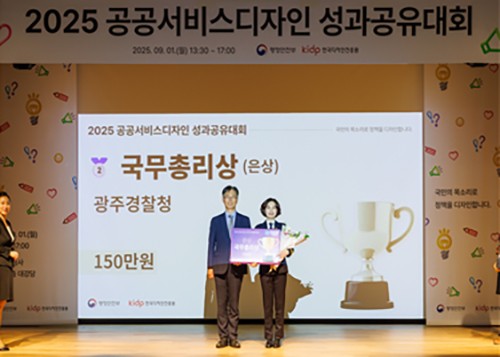 ±¤ÁÖ°æÂûûÀº Áö³ 1ÀÏ ÇàÁ¤¾ÈÀüºÎ ÁÖ°ü °ø°ø¼ºñ½ºµðÀÚÀÎ ¼º°ú°øÀ¯´ëȸ¿¡¼ ±¹¹«ÃѸ®»óÀ» ¼ö»óÇß´Ù.