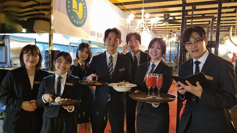 È޹̶ôºñÁî´Ï½º À¶ÇÕÀü°ø¿¡ Âü¿©Çϴ ȣÅÚÄÁº¥¼ÇÇаú, ¿Ü½ÄÁ¶¸®º£ÀÌÄ¿¸®Çаú, °æ¿µÇкÎ, ¹Ìµð¾î¿µ»ó°ø¿¬Çаú µî ÃÑ 4°³Çаú Çлý 100¿©¸íÀº ¹Ð·Áµå´Â ¼Õ´ÔÀ» ÀÀ´ëÇÏ´À¶ó ´« ÄÚ ¶ã »õ ¾øÀÌ ºÐÁÖÇß´Ù.