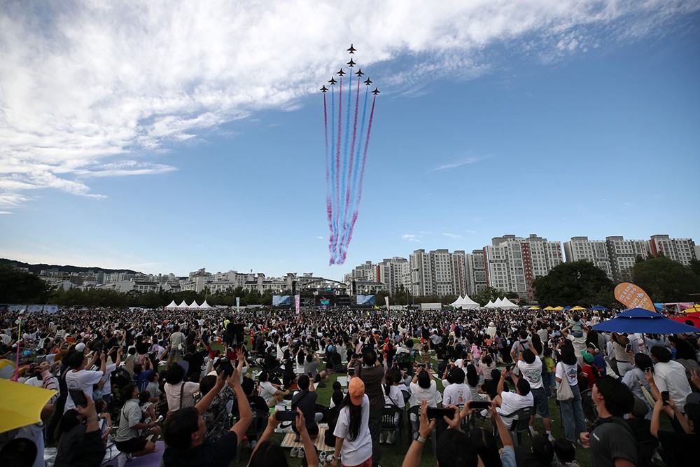 ¡®°¡À» ¿Â(ON) ¼ø°£¡¯À» Å׸¶·Î ¿¸° À̹ø ÃàÁ¦´Â ±¹³» Á¤»ó±Þ ¹ÂÁö¼ÇµéÀÌ Âü¿©ÇÑ ¸ÞÀÎ °ø¿¬°ú °ø±º Ư¼öºñÇàÆÀ ¡®ºí·¢À̱۽º¡¯ÀÇ ¿¡¾î¼î µî È·ÁÇÑ º¼°Å¸®¸¦ Á¦°øÇßÀ¸¸ç, ÅÙÆ®¿Í ŸÇÁ¸¦ ¼³Ä¡ÇØ °¡Á·¡¤¿¬ÀεéÀÌ Æí¾ÈÇÏ°Ô À½¾ÇÀ» Áñ±æ ¼ö ÀÖµµ·Ï Á¶¼ºÇÑ ¡®¹ÂÁ÷ÇÇÅ©´ÐÁ¸¡¯Àº ÃàÁ¦ÀÇ Á¤Ã¼¼ºÀ» È®¸³ÇØ Å« È£ÀÀÀ» ¾ò¾ú´Ù.
