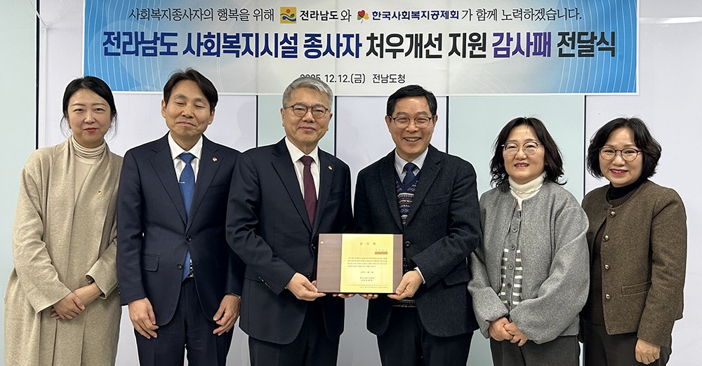 ±è¿ëÇÏ Çѱ¹»çȸº¹Áö°øÁ¦È¸ ÀÌ»çÀåÀº ¡°Àü³²µµ°¡ 2022³âºÎÅÍ »çȸº¹Áö½Ã¼³ Á¾»çÀÚµéÀ» À§ÇØ ²ÙÁØÈ÷ ³ë·ÂÇØ ¿Â Á¡ÀÌ »çȸº¹Áö ÇöÀåÀÇ Å« Èñ¸ÁÀÌ µÇ°í ÀÖ´Ù¡±¸ç ¡°ÀÌ¿¡ °¨»çÀÇ ¸¶À½À» ´ã¾Æ °¨»çÆÐ¸¦ Àü´ÞÇÑ´Ù¡±°í ¸»Çß´Ù.