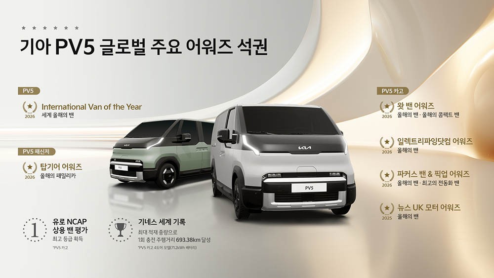 À̷νá PV5´Â Áö³´Þ °æ»ó¿ëÂ÷ ¾÷°è ÃÖ°í ±ÇÀ§ÀÇ ¡®2026 ¼¼°è ¿ÃÇØÀÇ ¹ê(International Van of the Year, IVOTY)¡¯À» ½É»çÀ§¿ø´Ü Àü¿ø ÀÏÄ¡·Î ¼ö»óÇÑ ÀÌ·¡, À¯·´ ÁÖ¿ä ¾î¿öÁ ¿¬ÀÌ¾î ¼®±ÇÇÏ°Ô µÆ´Ù.