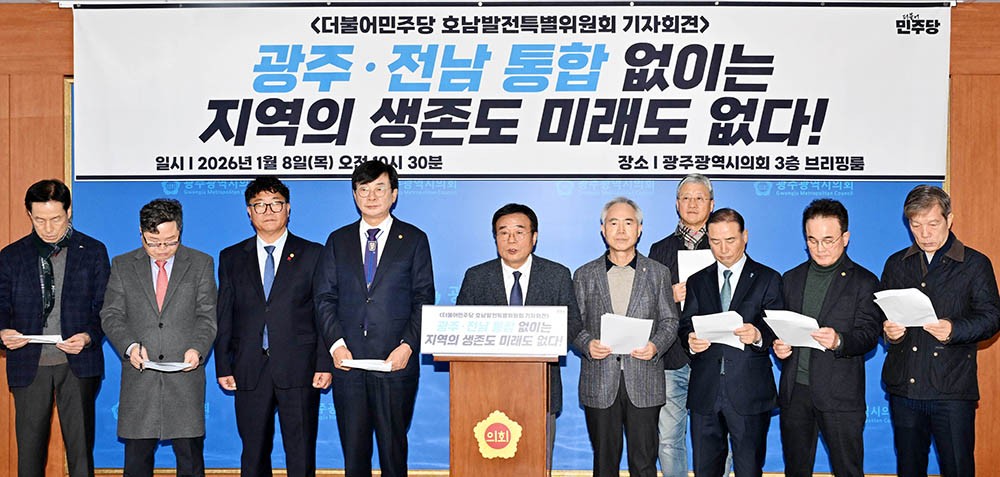 ´õºÒ¾î¹ÎÁÖ´ç È£³²¹ßÀüƯº°À§¿øÈ¸ ±¤ÁÖ¡¤Àü³² À§¿ø Àϵ¿Àº 8ÀÏ ±¤ÁÖ½ÃÀÇȸ¿¡¼ ±âÀÚȸ°ßÀ» ¿¾î ¡°±¤ÁÖ¡¤Àü³² ÇàÁ¤ ÅëÇÕ ¾øÀÌ´Â Áö¿ªÀÇ »ýÁ¸µµ, ¹Ì·¡µµ ¾ø´Ù¡±¸ç ¡°Æ¯º°¹ý¾ÈÀÌ 2¿ù Áß Á¶±â¿¡ Åë°úµÇ±æ ±â´ëÇÑ´Ù¡±°í ¹àÇû´Ù.