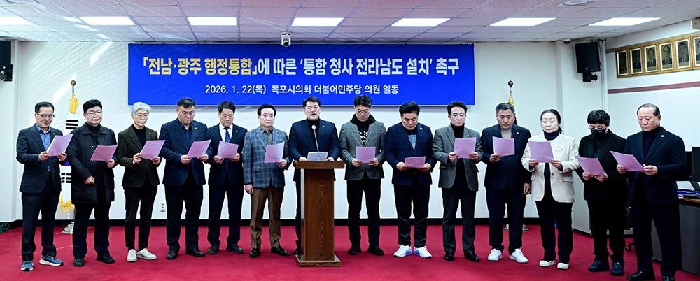 ¸ñÆ÷½ÃÀÇȸ ´õºÒ¾î¹ÎÁÖ´ç ÀÇ¿øµéÀÌ ¡®(°¡Äª)Àü³²¡¤±¤ÁÖ ÅëÇÕÆ¯º°½Ã¡¯ÀÇ Ã»»ç¸¦ Àü³²µµ¿¡ ¼³Ä¡ÇØ¾ß ÇÑ´Ù°í ÇѸñ¼Ò¸®¸¦ ³Â´Ù.<»çÁø>