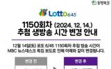 º¹±Ç¼öŹ»ç¾÷ÀÚ ¢ßµ¿Çູ±ÇÀº ·Î¶Ç 1150ȸ Ãß÷ »ý¹æ¼Û Æí¼º½Ã°£À» º¯°æÇß´Ù°í 14ÀÏ ¹àÇû´Ù. µ¿Çູ±Ç Ãø¿¡ µû¸£¸é À̳¯ Ãß÷¹æ¼Û»ç MBC ´º½ºµ¥½ºÅ© ƯÁýº¸µµ·Î ÀÎÇØ ·Î¶Ç 1150ȸ Ãß÷¹æ¼Û ¿¹»ó½Ã°£Àº 20½Ã 55ºÐ ~ 21½Ã 2ºÐÀÌ´Ù. ´Ù¸¸, À̳¯ ´º½º º¸µµ »óȲ¿¡ µû¶ó ·Î¶Çº¹±Ç Ãß÷ ¹æ¼ÛÀº ´õ Áö¿¬µÉ ¼ö ÀÖ´Ù. µ¿Çູ¡¦