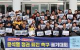 12ÀÏ ¿ÀÈÄ ±¤ÁÖ ºÏ±¸ ¿ëºÀµ¿ Àü³²´ëÇб³ ¹ÎÁÖ¸¶·ç¿¡¼ ¿¸° ÇåÁ¤À¯¸°¡¤³»¶õ¼ö±« ¡®À±¼®¿ Á¤±Ç ÅðÁø Ã˱¸ ±È±â´ëȸ¡¯¿¡¼ Àü³²´ë±³¼öȸ, ÃÑÇлýȸ, Ãѵ¿Ã¢È¸ µî Âü¼®ÀÚµéÀÌ Áï°¢ źÇÙ°ú üÆ÷¸¦ Ã˱¸Çϰí ÀÖ´Ù. /±è¾Ö¸® ±âÀÚ