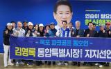 ¸ñÆ÷Áö¿ª ÆÄÅ©°ñÇÁ µ¿È£ÀεéÀÌ 31ÀÏ ´õºÒ¾î¹ÎÁÖ´ç ±è¿µ·Ï Àü³²±¤ÁÖÅëÇÕÆ¯º°½ÃÀå °æ¼± Èĺ¸ »ç¹«¼Ò¿¡¼ ±è Èĺ¸ ÁöÁö¸¦ ¼±¾ðÇÑ µÚ ÇÔ²² ±â³äÃÔ¿µÀ» Çϰí ÀÖ´Ù.