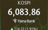 ´ëÇѹα¹ Áõ½Ã°¡ Àü¹«ÈĹ«ÇÑ ¡®6,000 °íÁö¡¯¸¦ Á¡·ÉÇÏ¸ç ±Û·Î¹ú ÀÚº»½ÃÀåÀÇ ´ëÀåÁÖ·Î ¿ì¶Ò ¼¹´Ù. Áö³´Þ »ç»ó óÀ½À¸·Î 5,000¼±À» µ¹ÆÄÇÑ Áö ºÒ°ú ÇÑ ´Þ¿© ¸¸¿¡ ´Ù½Ã 1,000p¸¦ ²ø¾î¿Ã¸®´Â ±«·ÂÀ» ¹ßÈÖÇϸç Çѱ¹ Áõ½ÃÀÇ »õ·Î¿î ÀÌÁ¤Ç¥¸¦ ¼¼¿ü´Ù. 25ÀÏ Çѱ¹°Å·¡¼Ò¿¡ µû¸£¸é À̳¯ ÄÚ½ºÇÇ Áö¼ö´Â Àü °Å·¡ÀϺ¸´Ù 114.22p(1¡¦