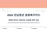 Àü³²µµ´Â 18ÀÏ ¡°2026³âºÎÅÍ Àü³² û³â ¹®Èº¹ÁöÄ«µå »ç¾÷ ÃßÁø ½Ã °æÁ¦Àû Ãë¾à °èÃþ(±âÃÊ»ýȰ¼ö±ÞÀÚ¡¤Â÷»óÀ§°èÃþ)ÀÌ ¼öÇý¸¦ ¹Þ´Â ¹®È´©¸®Ä«µå Áö±ÞÀÚ¿¡°Ôµµ 25¸¸¿ø Àü¾×À» Áö±ÞÇÑ´Ù¡±°í ¹àÇû´Ù. Àü³²Ã»³â ¹®Èº¹ÁöÄ«µå´Â û³âÀÇ ¹®È ÇâÀ¯ ±âȸ¸¦ ³ÐÈ÷°í Àڱ⠰è¹ßÀ» µ½±â À§ÇØ 2022³âºÎÅÍ ½ÃÇàÇϰí ÀÖ´Ù. Àü±¹ ÃÖÃÊ¡¦
