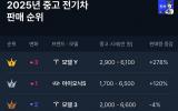 Áß°íÂ÷ Ç÷§Æû ¡®Ã¹Â÷¡¯°¡ ÀÚ»ç °Å·¡ µ¥ÀÌÅ͸¦ ±â¹ÝÀ¸·Î 2024³â°ú 2025³â Áß°í Àü±âÂ÷ ÆÇ¸Å ¼øÀ§¸¦ ºñ±³¡¤ºÐ¼®ÇÑ °á°ú, 2³â ¿¬¼Ó ÆÇ¸Å·® 1À§ ºê·£µå´Â Å×½½¶ó·Î ³ªÅ¸³µ´Ù. ´Ù¸¸, Áö³ÇØ Áß°í Àü±âÂ÷ ½ÃÀåÀ» ÁÖµµÇß´ø ¡®¸ðµ¨ 3¡¯°¡ 3À§·Î ¹Ð·Á³ª°í, SUV ¸ðµ¨ÀÎ ¡®¸ðµ¨ Y¡¯°¡ 1À§·Î ¿Ã¶ó¼¸ç Å×½½¶ó ³»¿¡¼µµ ÁÖ·Â ¸ðµ¨ÀÇ¡¦