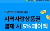 Àü³² °ø°ø¹è´Þ¾Û ¡®¸Ô±úºñ¡¯¿¡¼ 13ÀϺÎÅÍ Áö¿ª»ç¶û»óǰ±Ç °áÁ¦ ½Ã 5% ÆäÀ̹é À̺¥Æ®¸¦ ½ÃÀÛÇß´Ù. Àü³²µµ´Â ¼Ò»ó°øÀÎÀÇ ¼ö¼ö·á ºÎ´ã ¿ÏÈ¿Í Áö¿ª °æÁ¦ Ȱ¼ºÈ¸¦ À§ÇØ °ø°ø¹è´Þ¾Û ¡®¸Ô±úºñ¡¯¿Í »ó»ý¹è´Þ¾Û ¡®¶¯°Ü¿ä¡¯¸¦ ¿î¿µ ÁßÀÌ´Ù. °ø°ø¹è´Þ¾Û ¸Ô±úºñ´Â Áö³ 3¿ùºÎÅÍ ¼ÒºñÀÚ Ã¹ ÁÖ¹® 5õ¿ø ÇÒÀÎÄíÆù ¹× ´õºíÇÒÀÎÄíÆù¡¦