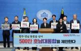 ¹ÝµµÃ¼ »ê´Ü¡¤ÇÇÁöÄÃAI º§Æ® µî ¡®3´ë Àü·«¡¯ Á¦½Ã Áøº¸´ç È£³² 3°³ ½Ãµµ´ç À§¿øÀå°ú Áö¹æ¼±°Å È帵éÀº 8ÀÏ ¿ÀÀü ±¹È¸ ¼ÒÅë°ü¿¡¼ ±âÀÚȸ°ßÀ» ¿°í ¡®±¤ÁÖ¡¤Àü³² ÅëÇÕ¡¯À» ³Ñ¾î ±¤ÁÖ¡¤Àü³²¡¤ÀüºÏÀ» Æ÷ÇÔÇÏ´Â ¡®500¸¸ È£³² ´ëÅëÇÕ¡¯À» Á¦¾ÈÇß´Ù. ±èÀ翬 ´ëÇ¥¿Í ÀüÁ¾´ö ±¹È¸ÀÇ¿ø, ÀÌÁ¾¿í ±¤ÁÖ½ÃÀå Èĺ¸, ±è¼±µ¿ Àü³²µµ¡¦