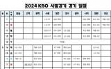 Çѱ¹¾ß±¸À§¿øÈ¸(KBO)°¡ 2024 KBO ½Ã¹ü°æ±â ÀÏÁ¤À» ¹ßÇ¥Çß´Ù. ¿ÃÇØ ½Ã¹ü°æ±â´Â 3¿ù9ÀÏ ½ÃÀÛÇØ 19ÀϱîÁö ÆÀ´ç 10°æ±â, MLB ¼¿ï °³¸·Àü¿¡ ¾Õ¼ ¿¬½À°æ±â¸¦ Ä¡¸£´Â LG¿Í Ű¿òÀº °¢°¢ 8°æ±â·Î ÃÑ 48°æ±â°¡ Æí¼ºµÆ´Ù. ½Ã¹ü°æ±â °³¸·ÀüÀº LG Æ®À©½º-kt wiz(¼ö¿ø), »ï¼º ¶óÀÌ¿ÂÁî-ÇÑÈ À̱۽º(´ëÀü), SSG ·£´õ½º-·Ôµ¥ ÀÚÀ̾ð¡¦