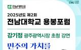 Àü³²´ë´Â ¿À´Â 16ÀÏ ¿ÀÈÄ 2½Ã ´ëÇÐ º»ºÎ ±¹Á¦È¸Àǵ¿ 2Ãþ ¿ëºÀȦ¿¡¼ ¡®2025³â Á¦2ȸ Àü³²´ë ¿ëºÀÆ÷·³¡¯À» °³ÃÖÇÑ´Ù. 10ÀÏ Àü³²´ëÇб³¿¡ µû¸£¸é ¿ëºÀÆ÷·³Àº Áö¿ª°ú ´ëÇÐÀÌ ÇÔ²² ¼ºÀåÇÒ ±æÀ» ¸ð»öÇÏ´Â °¿¬ ½Ã¸®Áî·Î, À̹ø Æ÷·³¿¡´Â °±âÁ¤ ±¤ÁÖ½ÃÀåÀÌ ¿¬»ç·Î ³ª¼ ¡®¹ÎÁÖÀÇ °¡Ä¡¸¦ ¼ºÀåÀÇ ±âȸ·Î¡¯¸¦ ÁÖÁ¦·Î °¿¬ÇÑ´Ù. ¡¦