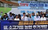 Áøº¸´ç Àü³²µµ´ç°ú Àü±¹³ó¹ÎȸÃÑ¿¬¸Í ±¤ÁÖÀü³²¿¬¸Í, Àü³²ºñ»óÇൿÀº 29ÀÏ Àü³²µµÃ» ¾Õ¿¡¼ ±âÀÚȸ°ßÀ» ¿¾î ¡°Æ®·³ÇÁ Á¤ºÎÀǰü¼¼ Çù¹Ú, ½Ò¡¤¼Ò°í±â µî ³óÃà»ê¹° Ãß°¡ °³¹æÀ» ¹Ý´ëÇÑ´Ù¡±°í ¹àÇû´Ù. À̵éÀº ¡°´ëÇѹα¹Àº ¹Ì±¹»ê ³óÃà»ê¹° 5À§ ¼öÀÔ±¹ÀÌ¸ç ´ë¹Ì ³ó»ê¹° ¹«¿ªÀûÀÚ´Â 88¾ï´Þ·¯¿¡ À̸£´Â »óȲ¡±À̶ó¸ç ¡°Æ®·³ÇÁ¡¦