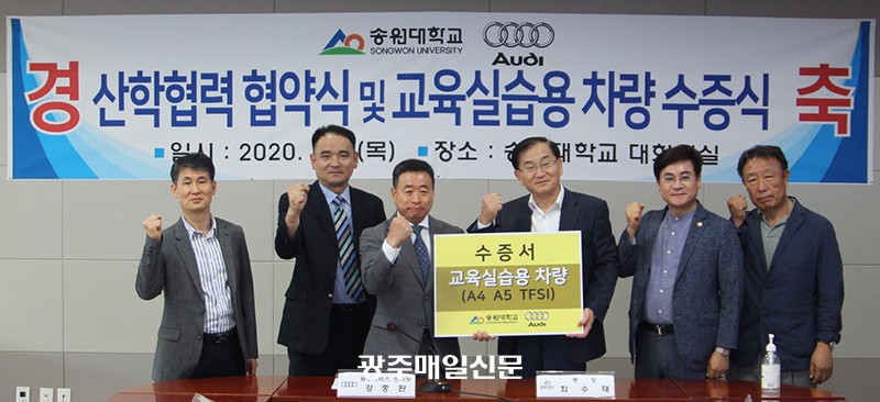 ¼Û¿ø´ëÇб³(ÃÑÀå ÃÖ¼öÅÂ)´Â Áö³ 4ÀÏ ¾Æ¿ìµð ÄÚ¸®¾Æ¡ª°íÁø¸ðÅͽº¢ß(¾Æ¿ìµð ±¤ÁÖ¼ºñ½º ¼¾ÅÍÀå °Áßȯ)¿Í ÀÚµ¿Â÷ ¿ì¼ö ±â´É Àη ¾ç¼ºÀ» À§ÇÑ »ê¡¤ÇÐ ±³·ùÇù·Â°ú ½Ç¹«±³À°¿ë Â÷·® ¼öÁõ½ÄÀ» °¡Á³´Ù.