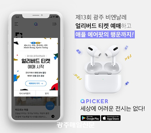 ±¤ÁÖºñ¿£³¯·¹ Àü½ÃÀ½¼ºÇؼ³ ¾îÇø®ÄÉÀ̼ÇÀº ¡®±¸±ÛÇ÷¹ÀÌ¡¯ ȤÀº ¡®¾ÖÇà ¾Û½ºÅä¾î¡¯¿¡¼ ¡®Å¥ÇÇÄ¿¡¯¸¦ °Ë»öÇØ ³»·Á ¹ÞÀ» ¼ö ÀÖ´Ù. ¶ÇÇÑ Á¦13ȸ ±¤ÁÖºñ¿£³¯·¹ ¼º°ø °³ÃÖ¸¦ ±â¿øÇÏ¸ç ¡®Å¥ÇÇÄ¿¡¯¿¡¼´Â ÃÖ´ë 50%ÀÇ ÀÔÀå±Ç ÇÒÀÎ ÇýÅÃÀÌ Àû¿ëµÇ´Â ¾ó¸®¹öµå ƼÄÏÀ» ÆÇ¸Å ÁßÀÌ´Ù. ¾ó¸®¹öµå ƼÄÏÀ» ¿¹¸ÅÇÑ °ü¶÷°´¿¡°Ô´Â Ãß÷À» ÅëÇØ ¡®¿¡¾îÆÌ¡¯, ¡®½ºÅ¸¹÷½º À½·á ±³È¯±Ç¡¯ µîÀ» Áö±ÞÇÏ´Â À̺¥Æ®¸¦ ¿À´Â 31ÀϱîÁö ÁøÇàÇϰí ÀÖ´Ù. º°µµ ÀÀ¸ð °úÁ¤ ¾øÀÌ ¾ó¸®¹öµå ƼÄÏÀ» ¿¹¸ÅÇϸé ÀÚµ¿À¸·Î ÀÀ¸ðµÈ´Ù.