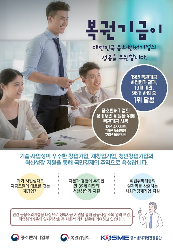 Áß¼Òº¥Ã³±â¾÷ÁøÈï°ø´Ü(ÀÌÇÏ ÁßÁø°ø)Àº 2004³âºÎÅÍ Áß¼Ò±â¾÷â¾÷ ¹× ÁøÈï±â±ÝÀÇ Á¤Ã¥ÀÚ±Ý(â¾÷±â¾÷Áö¿øÀ¶ÀÚ) ÀÌÂ÷º¸Àü¿¡ º¹±Ç±â±ÝÀ» Ȱ¿ë ÁßÀÌ´Ù. ½Å¿ë ¹× ´ãº¸¿©·ÂÀÌ ¾ø¾î ¹Î°£±ÝÀ¶¿¡¼ ¼Ò¿Ü¹Þ´Â û³ââ¾÷°¡, â¾÷Ãʱâ±â¾÷ ¹× Àçâ¾÷ÀÚ¿Í °°Àº °æÁ¦Àû ¾àÀÚ¸¦ ´ë»óÀ¸·Î Á¤Ã¥ÀÚ±ÝÀ» Áö¿øÇϰí ÀÖ´Ù.